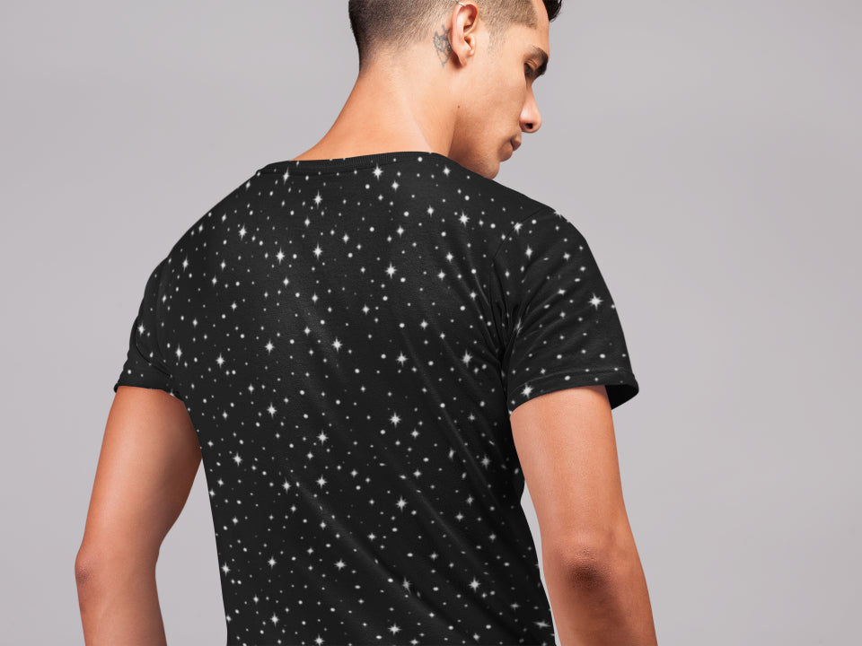 The "Men's All Over Print Night Sky T-shirt" offers a sleek look with seamless print via sublimation, ensuring a smooth, uninterrupted design. Its unisex regular fit ensures comfort for all. Perfect blend of style and comfort, ideal for any casual or active wear.