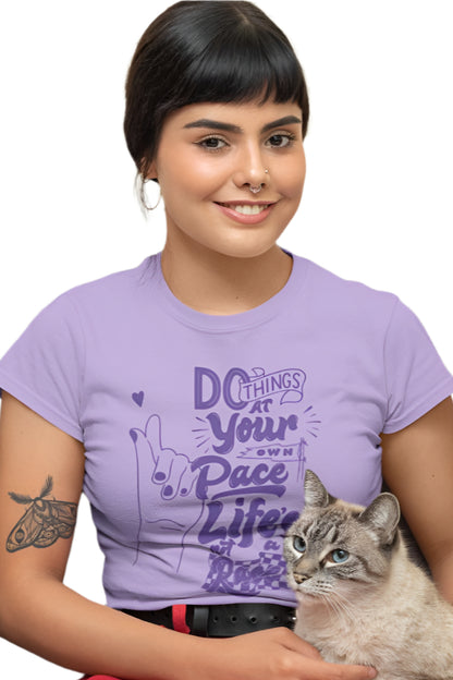 Embrace every challenge with confidence in our Women's Life's Race T-shirt. Made from soft, premium cotton, this tee provides all-day comfort and a perfect regular fit. It’s designed to keep up with your fast-paced life